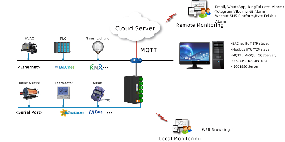 -Support both local and cloud configuration for remote data monitoring;