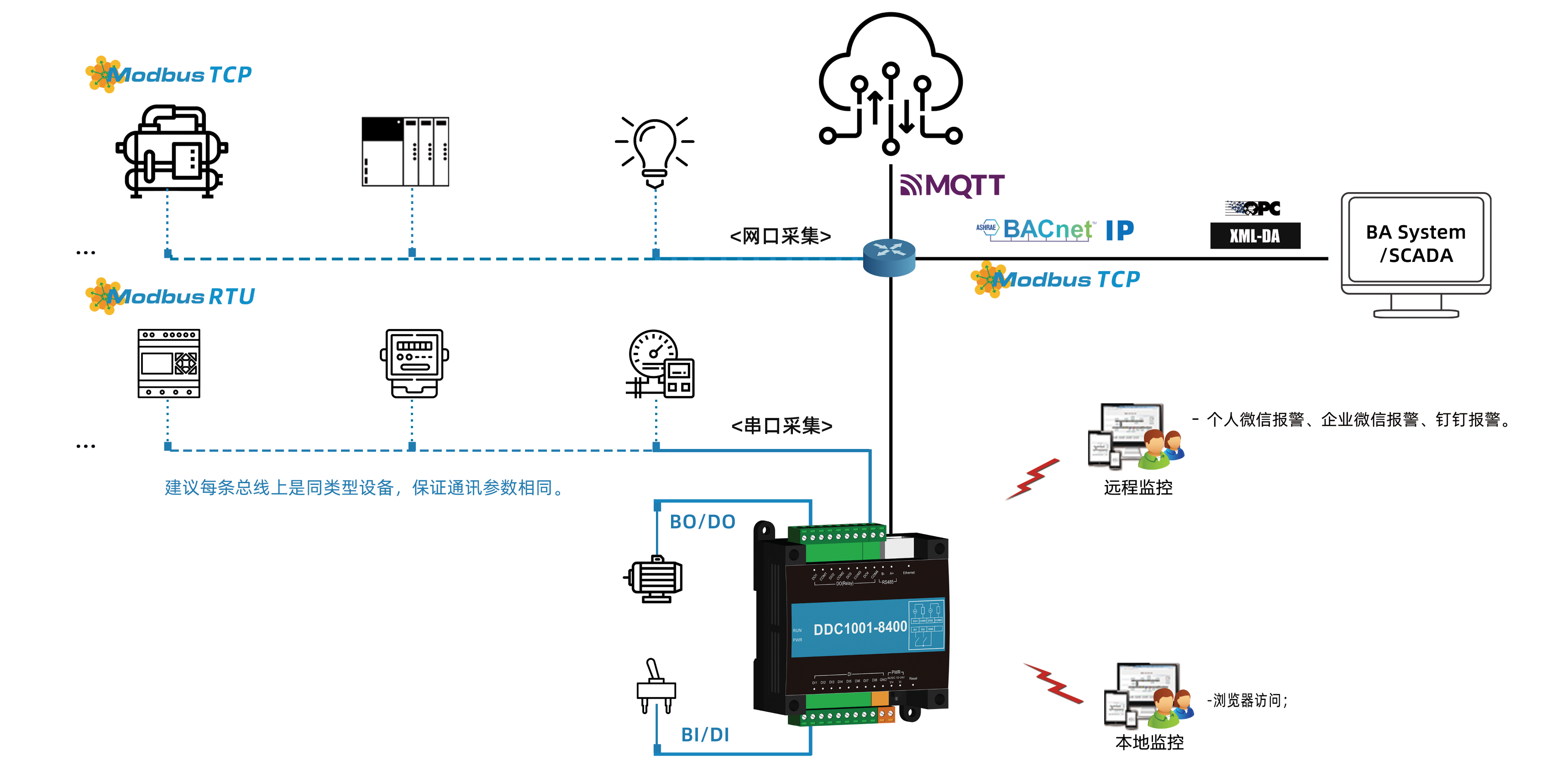| -DDC本身也是网关,支持采集Modbus 、BACnet IP、Simulator,方便扩展; |