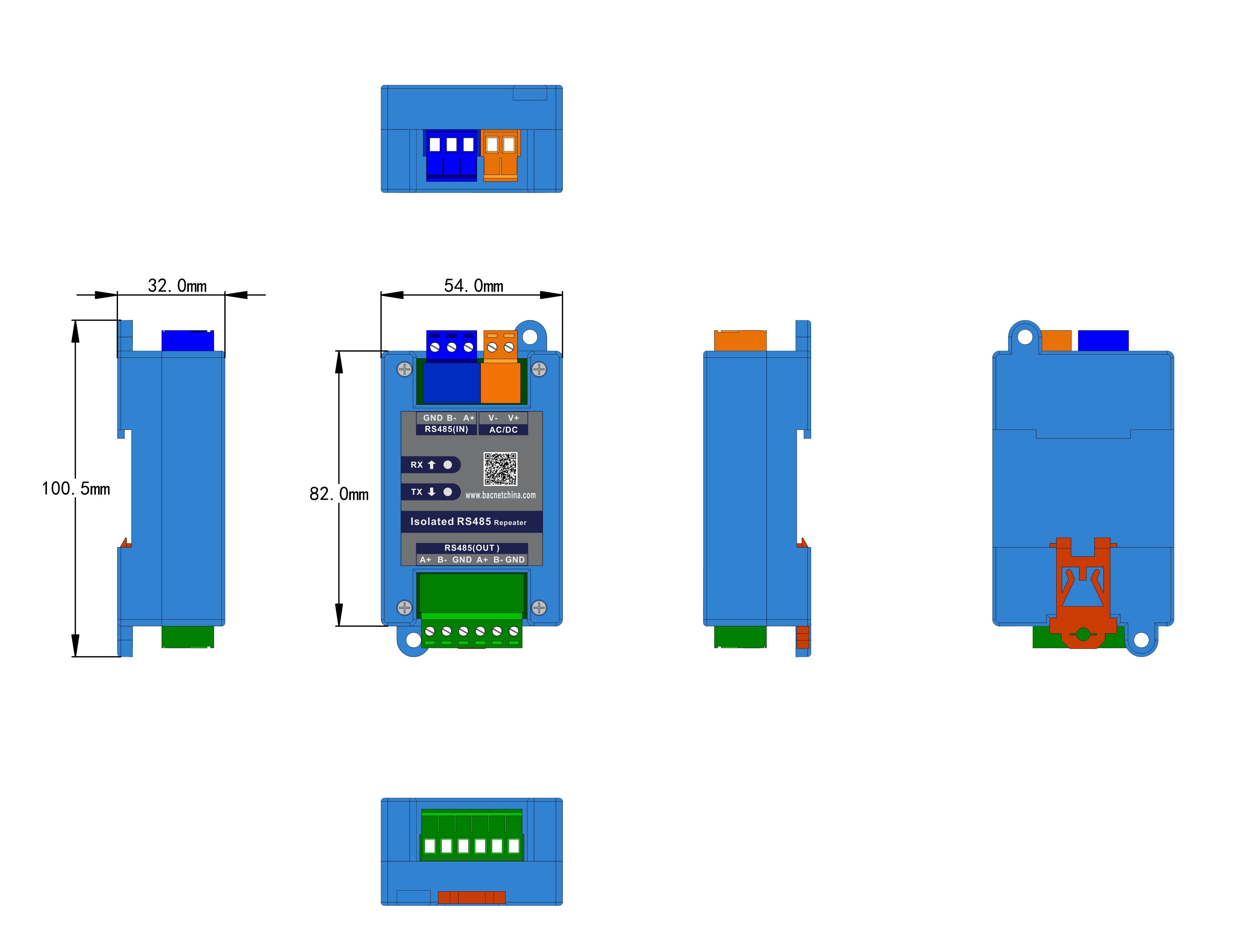 级联连接:接N个485中继器,无限延长RS485通讯距离,扩展更多485设备,最大共支持连接128个设备。